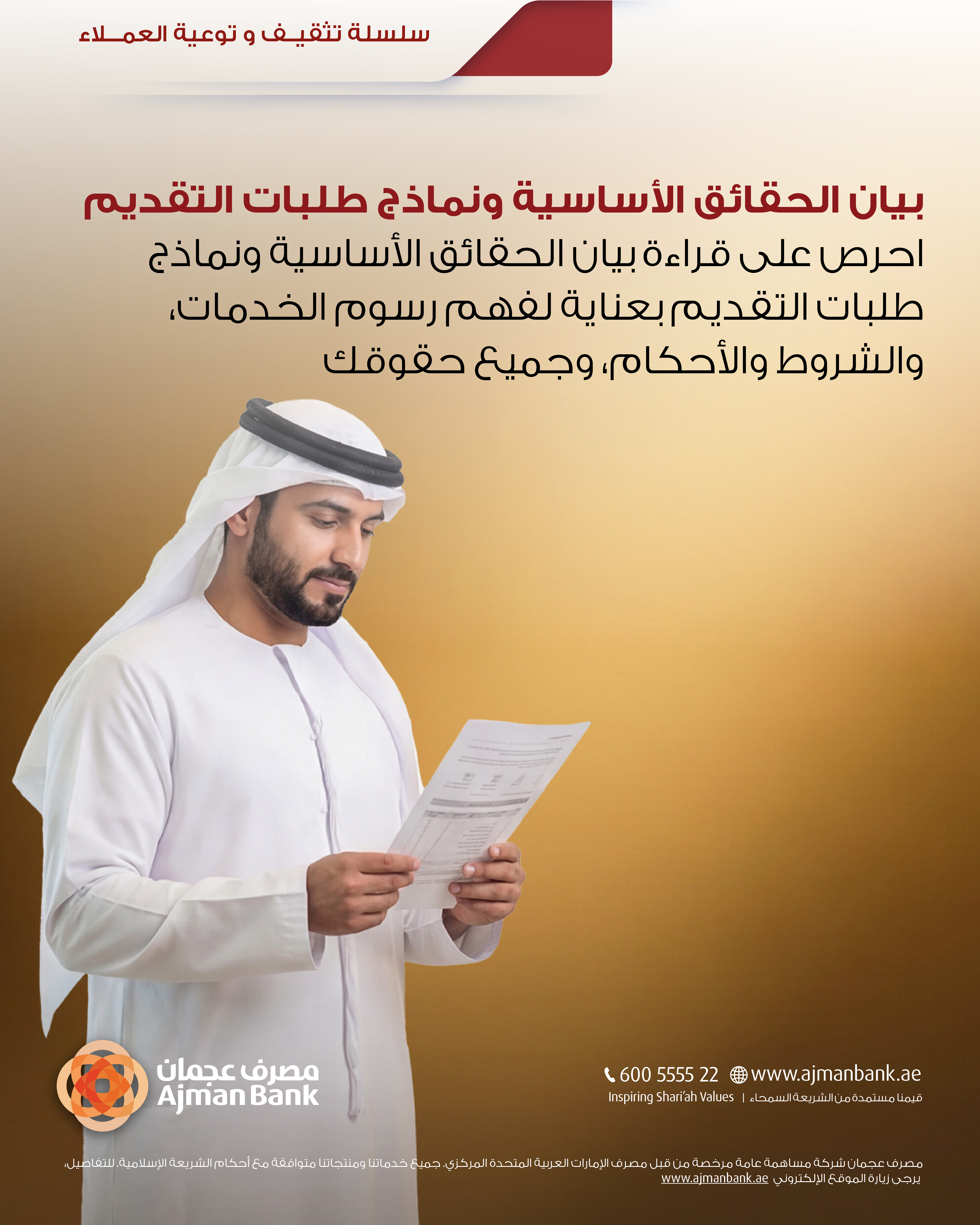 انطلاقًا من حرصنا لضمان الشفافية الكاملة مع عملائنا من خلال جميع قنوات التواصل ؛ تعمل وحدة تثقيف وتوعية المستهلك لدينا على توفير التفاصيل والمعلومات الضرورية فيما يتعلق بالثقافة المالية ومفاهيم الشريعة والتوعية الأمنية والاحتيالية، إلى جانب محتويات قيمة أخرى وذلك لمساعدتك على اتخاذ قرارات مالية أكثر حكمة